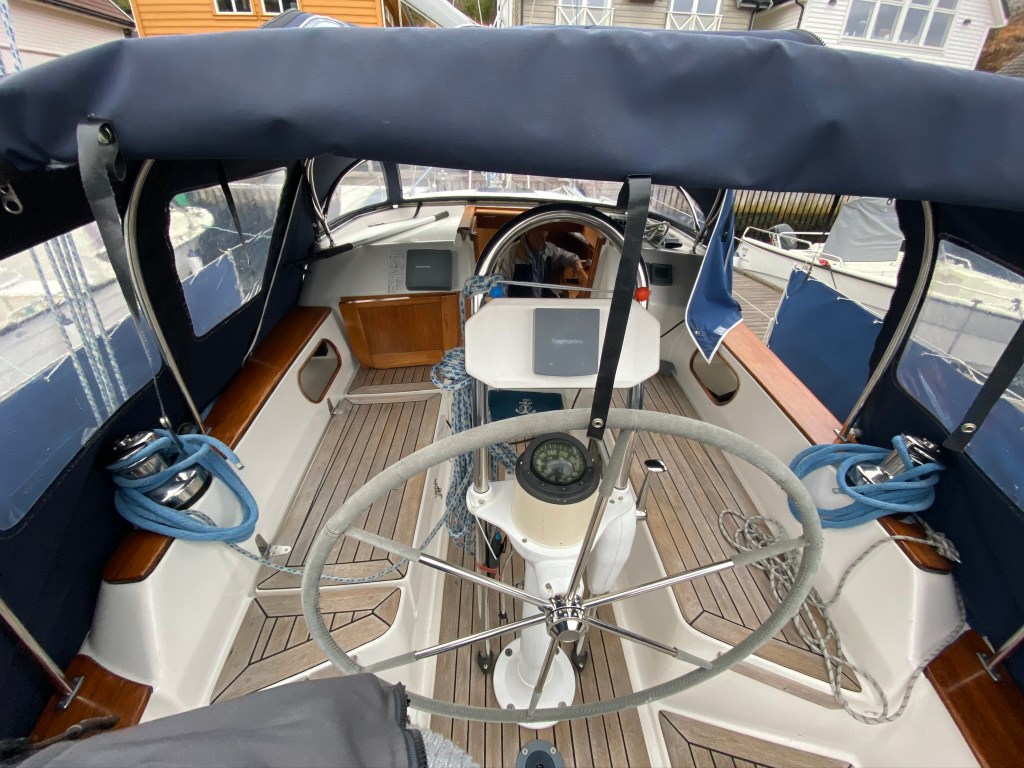 While waiting for the day set out to survey the boat with my father-in-law I was obsessing over the online ad. A 2002 Nordship 35 DS, i.e., type deck-saloon sailer and according to the ad in immaculate condition. Especially the last part made me somewhat skeptical but also antsy to finally have a look for myself. Nevertheless, the boat ticked all the boxes of my list of what I was looking for. Granted, there is no inside steering position per se, more of a lookout, with good forward visibility and control of the autopilot.